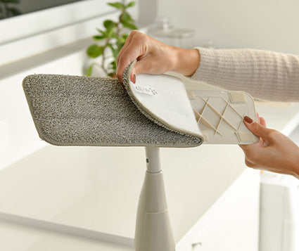 - -Spray integrado e prático com reservatório de 380ml acionado por alavanca no cabo. -Acompanha escova para limpeza da microfibra. -Base flexível com microfibra de alta absorção. -Refil de microfibra removível lavável.