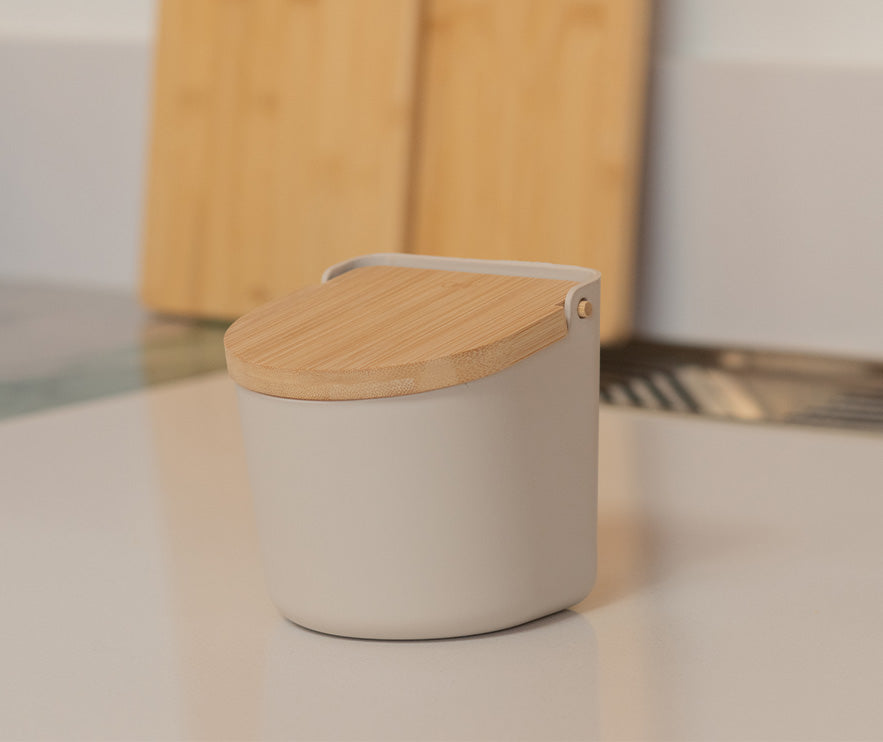 O Saleiro da Linha Lume traz mais praticidade e elegância para organizar a sua cozinha. Ideal para deixar na bancada, possui tampa basculante que protege o sal da umidade e facilita o uso no dia a dia. Seu design minimalista, traz sensação de aconchego e sofisticação na cozinha, combina bambu com plástico com acabamento fosco, unindo funcionalidade e beleza na sua rotina.