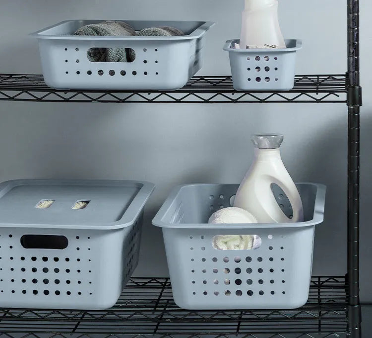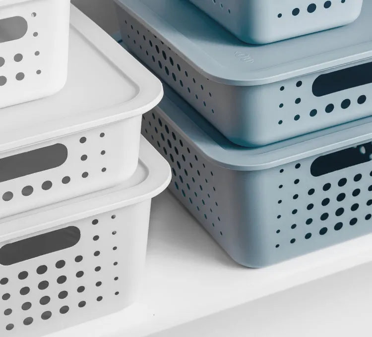A linha foi desenvolvida priorizando o cuidado com a sua rotina, por isso, possui furos que facilitam a ventilação e bordas maiores que facilitam a pega e transporte. As cestas são produzidas em plástico atóxico (polipropileno) com textura externa para diminuir riscos e arranhões e acabamento fosco na superfície interna.
