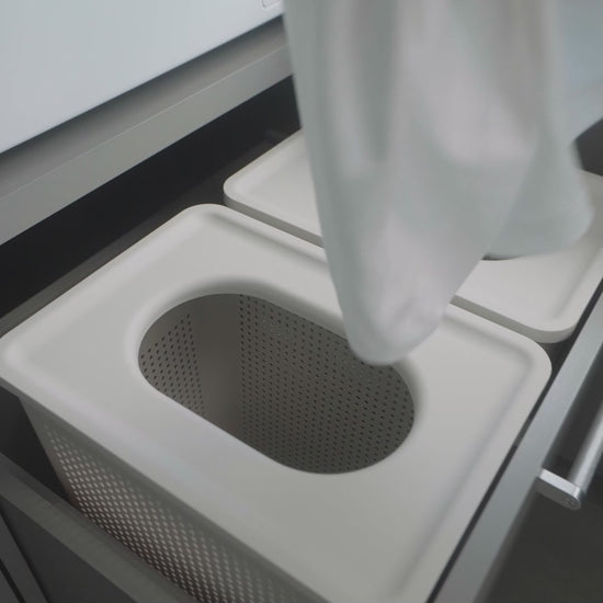 - -Capacidade de 38L em um formato compacto, ideal para espaços reduzidos -Abertura superior prática, permitindo inserir roupas sem levantar a tampa -Tampa funcional com encaixe na borda do cesto quando posicionada na vertical -Alças laterais que facilitam o transporte e o manuseio no dia a dia