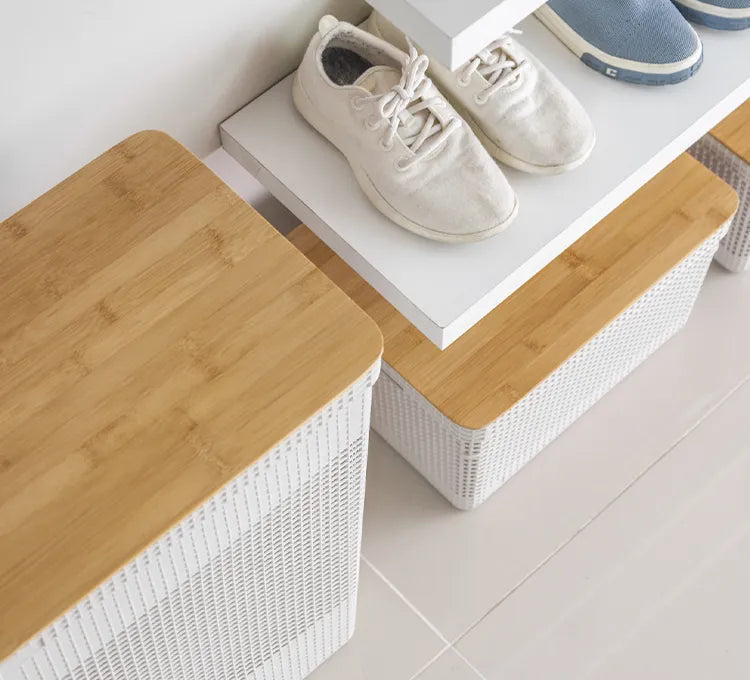- -Mix perfeito entre conforto, design e funcionalidade -Diversos tamanhos, empilháveis e versáteis para diferentes usos -Tampa em bambu adiciona sofisticação e elegância ao ambiente -Ideais para combinar organização e decoração na casa