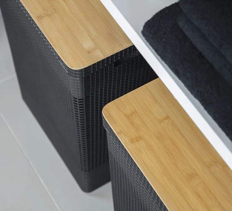 Cesto de roupas Ou 49L com tampa de bambu Linha Grid