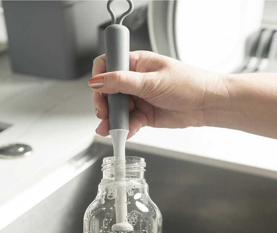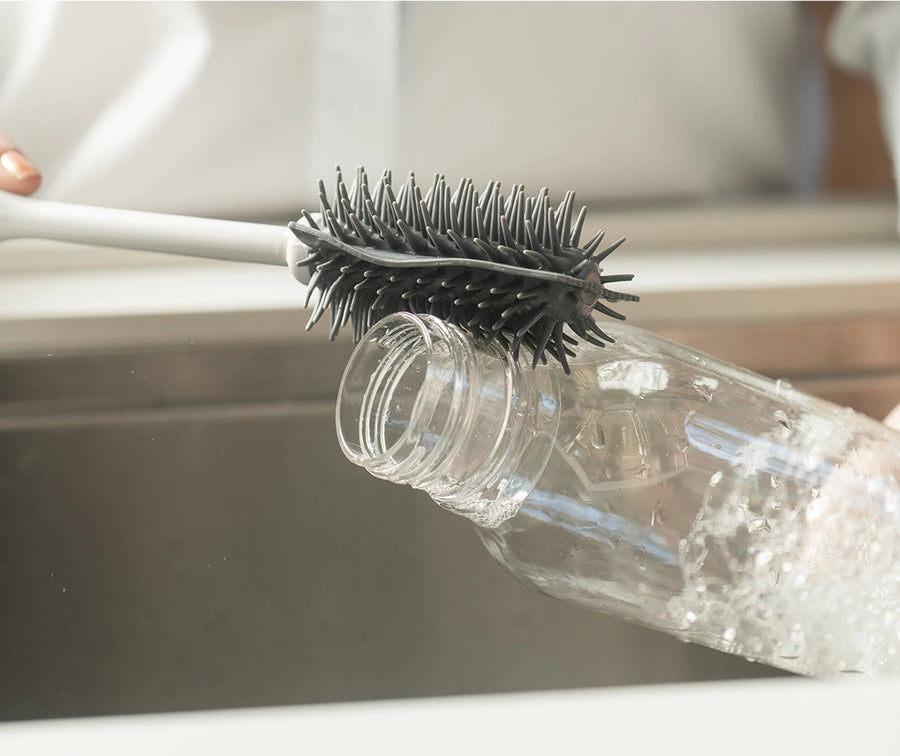 - Cerdas e raspadores na ponta para alcançar sujeiras no fundo