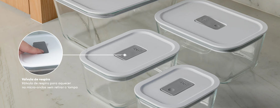 Também pode ser levado ao micro-ondas com a tampa, basta abrir a válvula de respiro. Feito de vidro borossilicato, um material termo-resistente que evita manchas e odores, é uma escolha durável e segura para armazenar seus alimentos.