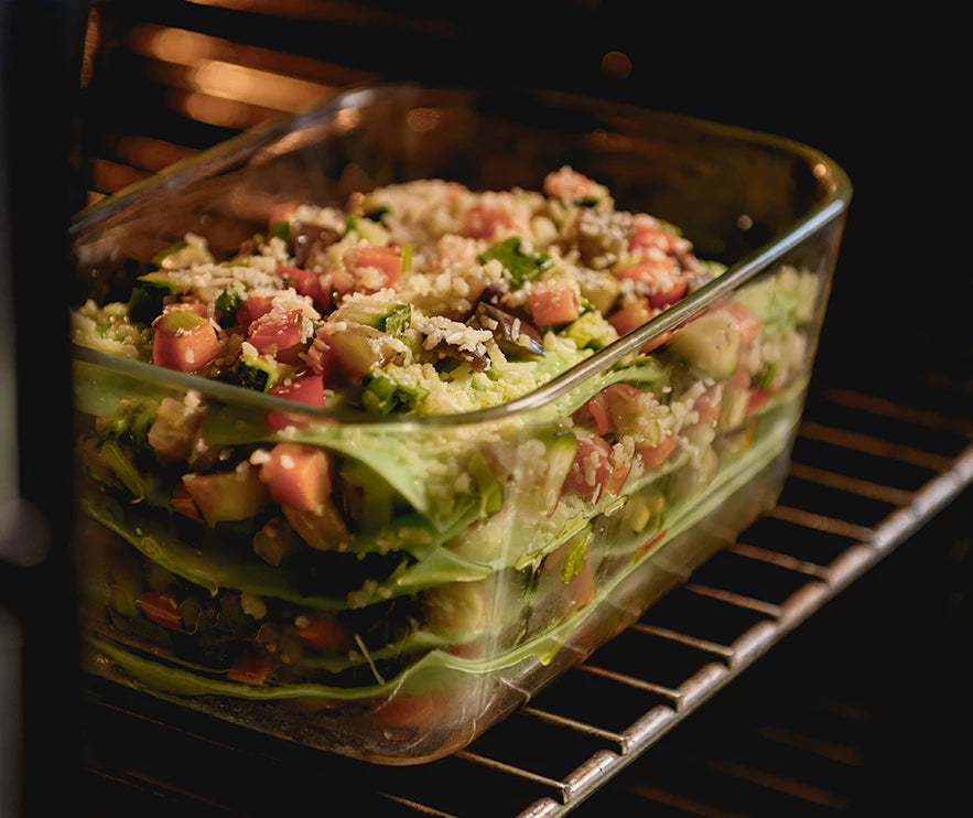 O pote de vidro hermético da linha Fresh Lock acompanha você em todas as etapas no preparo das refeições, suportando temperaturas de até 220°C no forno ou air fryer e -20°C no freezer.