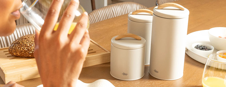 - -Ideal para armazenar alimentos secos de forma adequada -Mix de materiais que combina funcionalidade e estilo ao ambiente -Alça de bambu 100% renovável, promovendo sustentabilidade -Sofisticação e conforto, tornando sua casa mais aconchegante e organizada