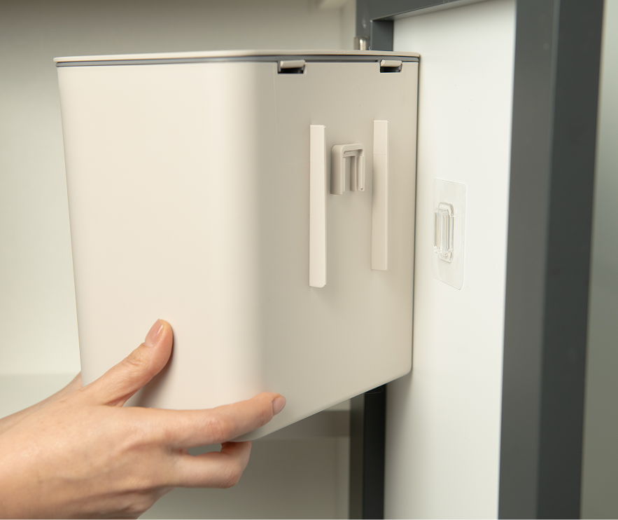 - -Pode ser usada na bancada, parede ou dentro do armário -Fixação na parede com tecnologia do adesivo Ultra Click, sem precisar furar a parede -Aro interno removível que oculta o saco de lixo e mantém o visual clean