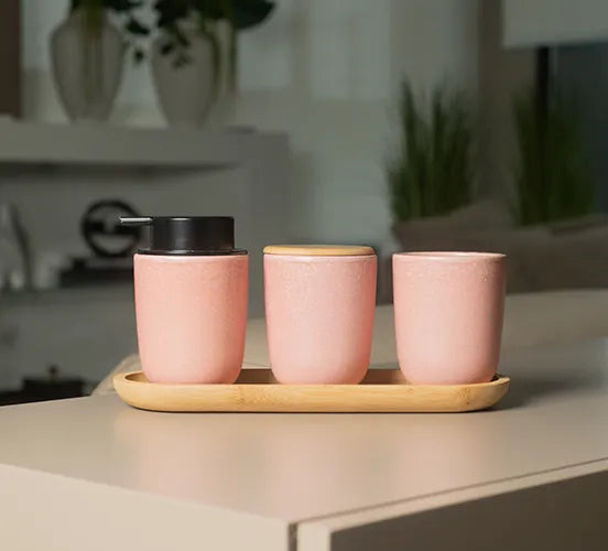 - -Expressa personalidade na decoração do banheiro -Combina texturas de pedras e mármores para um ambiente mais tranquilo -Inclui detalhes em bambu, promovendo sustentabilidade -Une sofisticação, funcionalidade e respeito ao meio ambiente